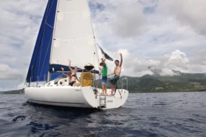 À bord de Luciole, POGO de 8,5 m, vous pourrez participer aux manœuvres et partager votre expérience. Une journée de détente où le programme peut changer en fonction de vos envies ! Alexis et Yan vous accueillent à bord de leur voilier de course pour découvrir les anses perdues du nord caraïbe. Découverte de la voile rapide, sensations garanties.