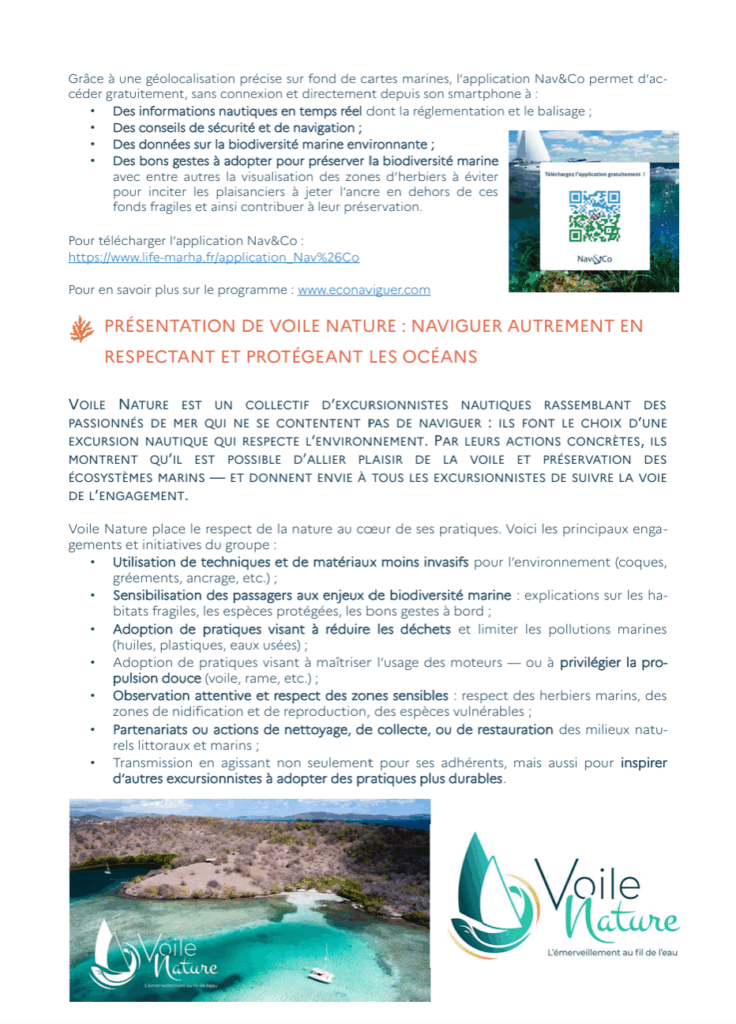 Ces humains engagés pour la planète bleue ont fait le pari d’intégrer le regroupement Voile Nature afin qu’ensemble nous puissions vous proposer une sélection d’éco-excursions nautiques pour découvrir le littoral de la Martinique et de la Guadeloupe autrement.